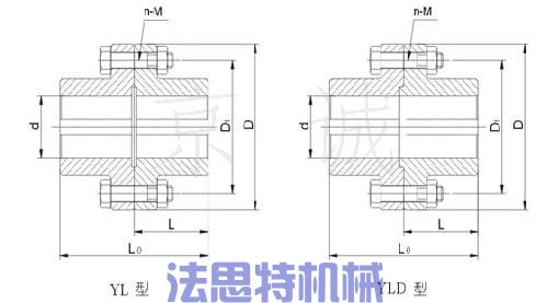 YL型凸緣聯(lián)軸器和YLD型凸緣聯(lián)軸器的結(jié)構(gòu)和基本參數(shù)為: